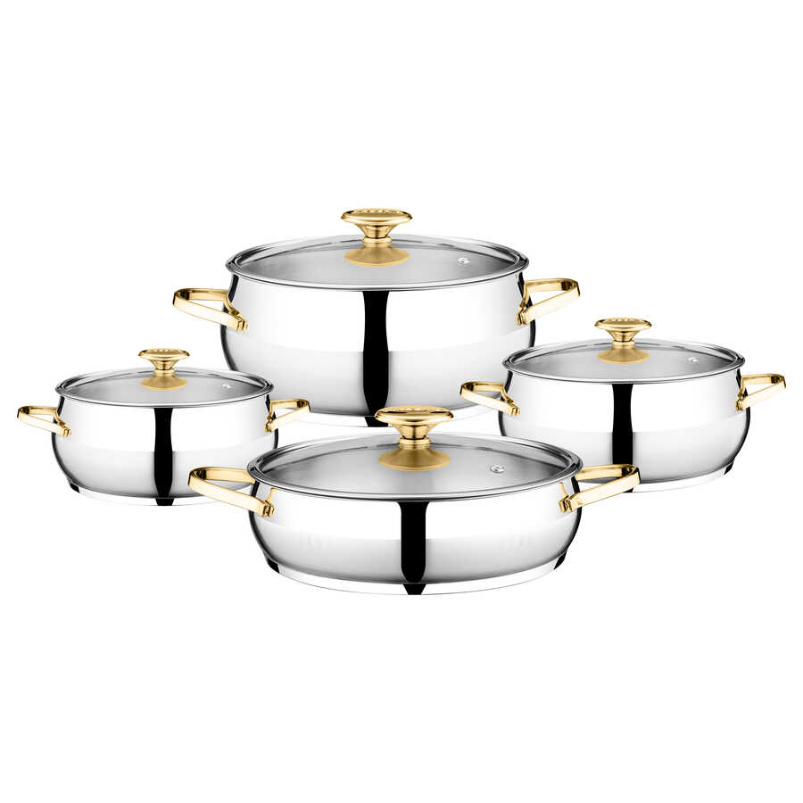 Merkür 8 Parça Altın Kulplu Cam Kapaklı Çelik Tencere Seti